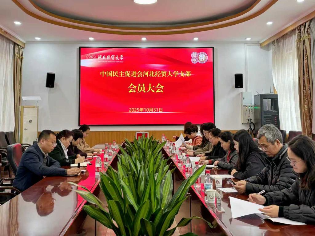10月31日,中国民主促进会河北经贸大学支部会员大会在我校召开。校党委统战部部长李军、民进石家庄市委会驻会副主委张慧巧、秘书长张伟、机关干部刘一宁受邀出席会议,支部全体在石会员参加。